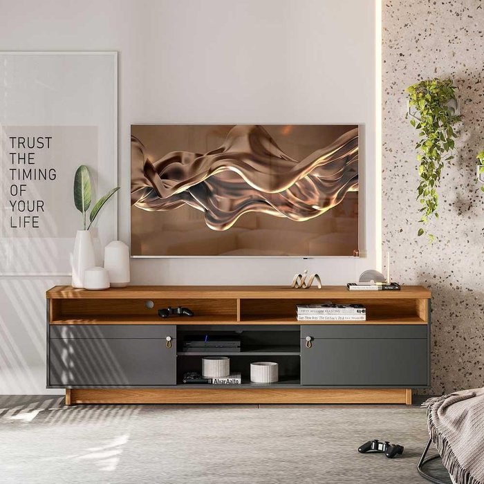 Rack Para Sala Tv 75 Polegadas Araçatuba Nature Chumbo Linea Brasil Nature Chumbo