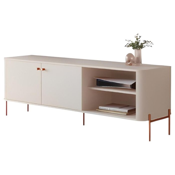 Rack para Sala Tv até 58 Polegadas Moderno 2 Portas Off White/Bronze