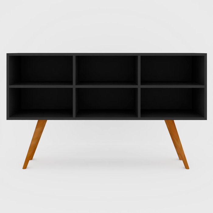 Rack Para Sala Tv Preto Com Pés Madeira Moderno