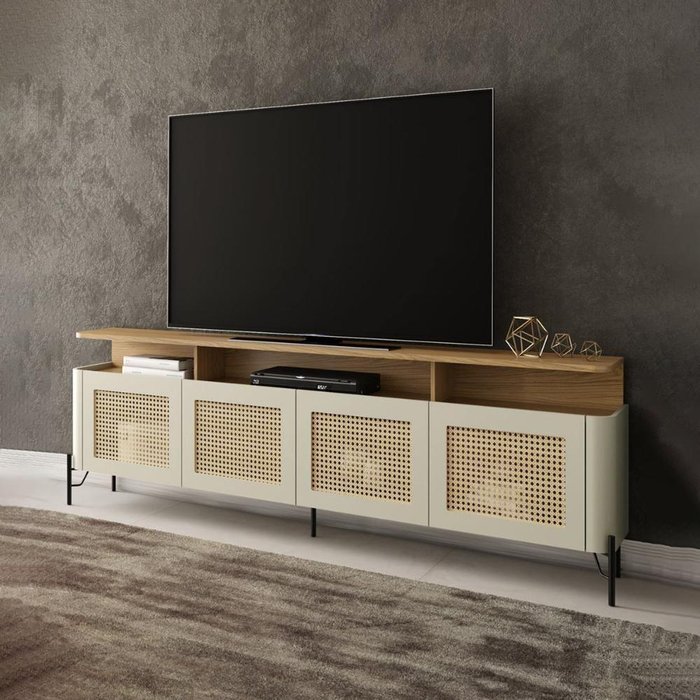A Linha Bend traz Tendência e Inovação com um toque de arte. Esse Rack combina funcionalidade e elegância com um design inovador que destaca suas linhas curvas e orgânicas. Fabricado com materiais de alta qualidade e acabamento refinado, este móvel se destaca pelas Portas Frontais revestidas com Palha Natural Sextavada, adicionando um toque de textura e originalidade ao ambiente. As curvas suaves do rack não apenas conferem uma estética visualmente atraente, mas também proporcionam um ambiente ergonômico para armazenamento e organização.