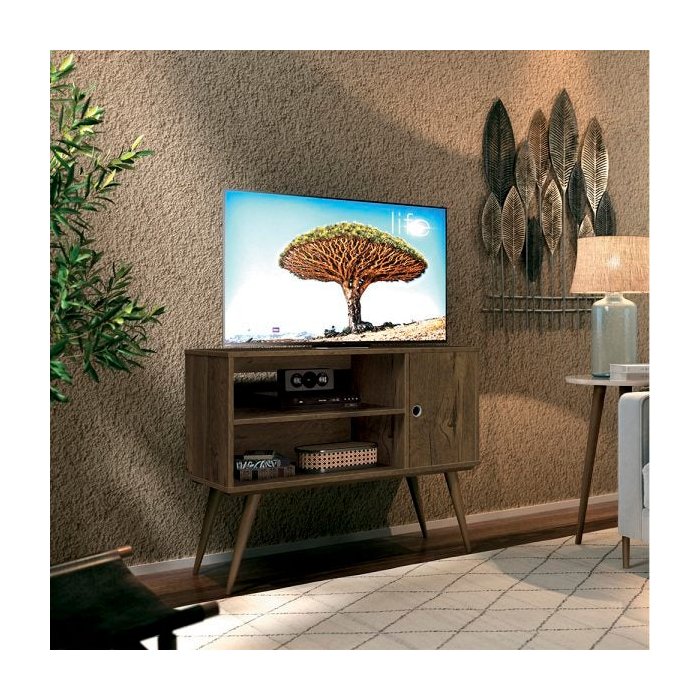 O Rack Para Tv 32 Polegadas Retrô Pés Palito Reale Nogal é inspirado no design retrô e comporta televisores de até 32 polegadas. Feito especialmente para aqueles que querem deixar um estilo belo e único em seu ambiente, o Rack Reale possui espaços para deixar aparelhos eletrônicos mas também podem ser usados para deixar livros ou demais utensílios. O Rack Reale é a peça de decoração mais charmosa que você irá encontrar na internet!