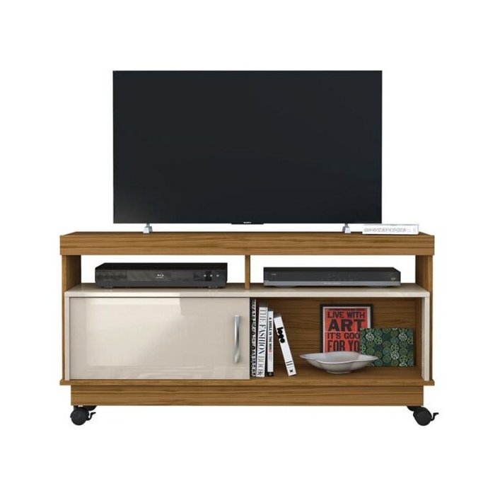 Rack Artur, foi inspirado em elementos de design contemporâneo, pensando em praticidade para o seu dia a dia e modernidade para sua sala de estar. Estrutura em MDP, que proporciona melhor acabamento nas bordas e superfícies, madeira proveniente de reflorestamento, contando com pintura em acabamento em UV (Brilho/Fosco). Composto por 01 porta deslizante com trilhos em plástico, puxador em poliestireno cromado, nichos com amplo espaço interno para aparelhos eletrônicos, rodízios inclusos na embalagem, e furação para passagem de cabos mantendo os fios mais organizados. É ideal para TVs de até 50 polegadas. Seus momentos de lazer na frente da TV, serão ainda mais prazerosos com este lindo produto. Este móvel chegará em sua casa separado em 01 volume.