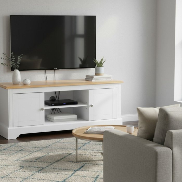 Rack para Tv 50 Polegadas Tampo de Madeira Maciça Louise Branco / Mel