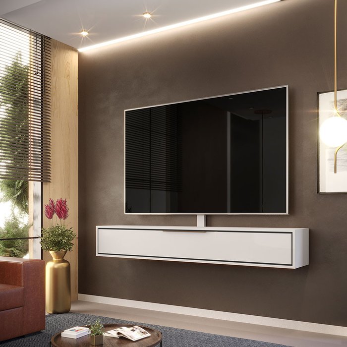 O RackSuspenso Joy 160 é o que há de mais moderno em móveis para salas de TV, pois deixará sua sala organizada e fácil de limpar, com mais espaço de circulação e mais segurança ao fixar sua TV diretamente na parede sem painel, permitindo que mude quando quiser para TVs de até 65 polegadas sem precisar trocar nenhum móvel.