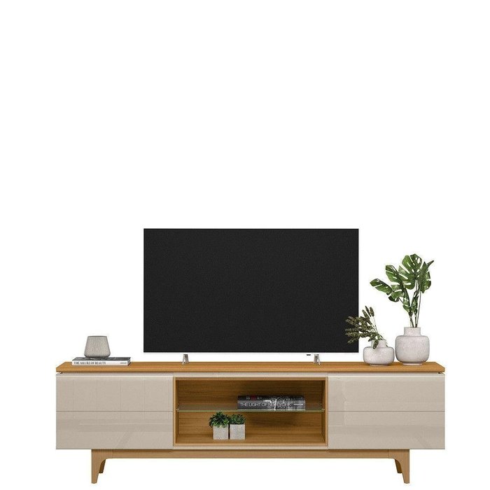 Rack para Tv 75 Polegadas Duas Portas Miami Linea Brasil Tauari/off White Brilho