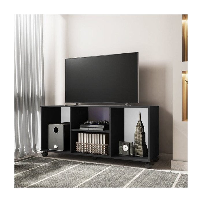 Rack para TV até 42 Polegadas com Rodízios Aruba II Móveis Bechara Preto Fosco