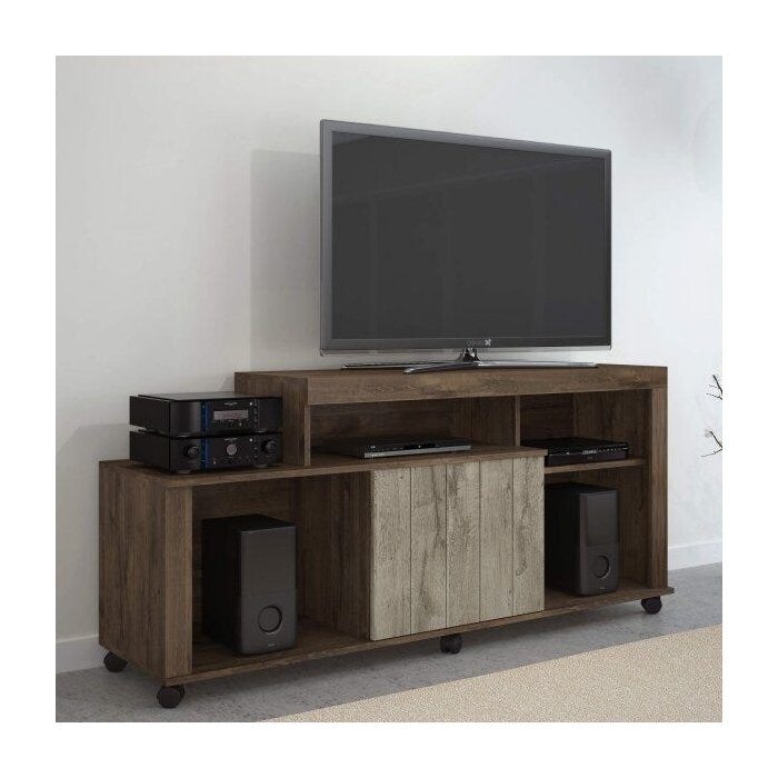 Rack para TV até 43 Polegadas 1 Porta 4 Nichos Jcm Móveis Marrom