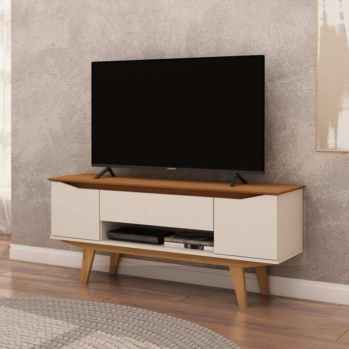 Rack para TV até 45 Polegadas Retrô 2 Portas 1 Gaveta 1,35m Arlus Camaru/Pérola