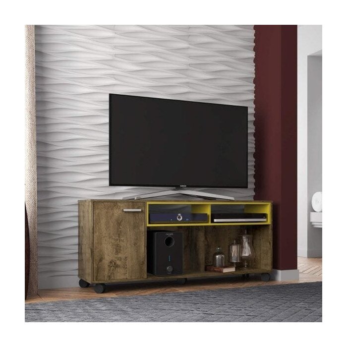 Rack para TV até 47 Polegadas com Rodízios New Creta Móveis Bechara Madeira Rústica/Amarelo