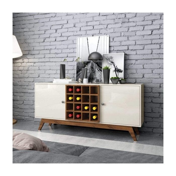 Rack para TV até 55 Polegadas 2 Portas com Adega 150cm Retrô Dalla Costa Off White/Nobre