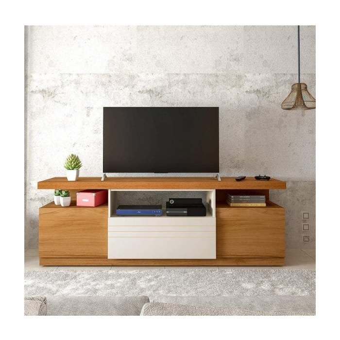 Rack para TV até 55 polegadas 3 Portas Munique Artely Freijó/Off White/Branco