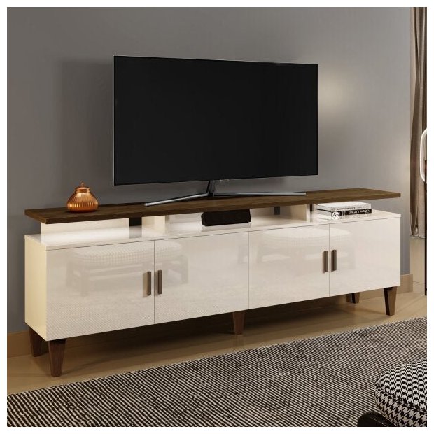 Rack para TV até 55 Polegadas 4 Portas Retrô Cajueiro Yescasa Off White/Cânion Soft