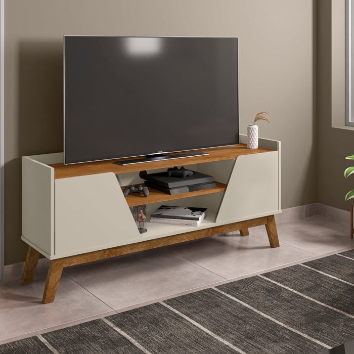 Rack para Tv até 55 Polegadas Ares com 2 Porta e Pés de Madeira Babus - Off White / Naturalle