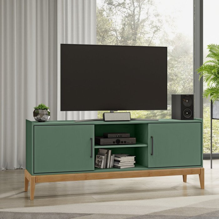 Rack para TV até 55 Polegadas Pés em Madeira Maciça Milão Verde/Freijó