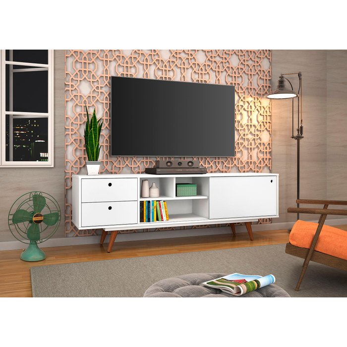 Rack para TV até 55 Polegadas Pés em Madeira Maciça Retrô 85 Branco
