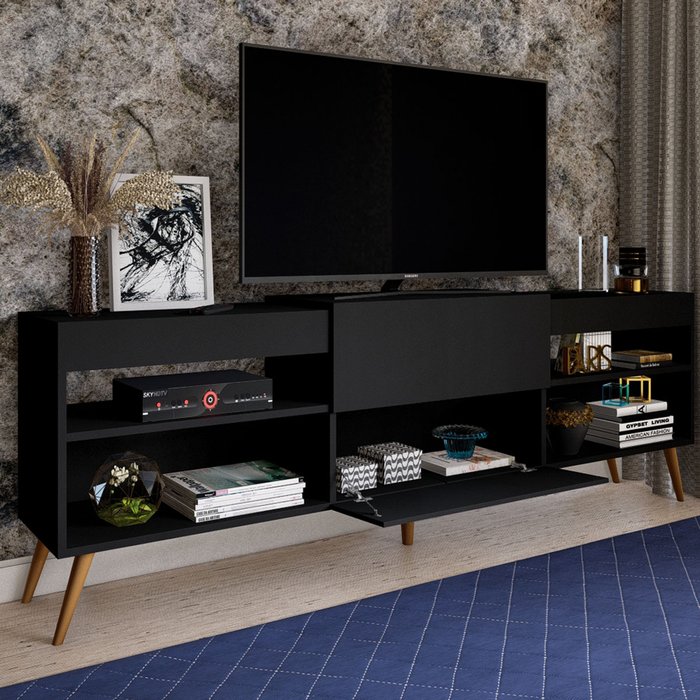 Rack para TV Até 55 Polegadas Roma 1 Porta 2 Prateleiras Preto Fosco - Panorama Móveis Preto Fosco