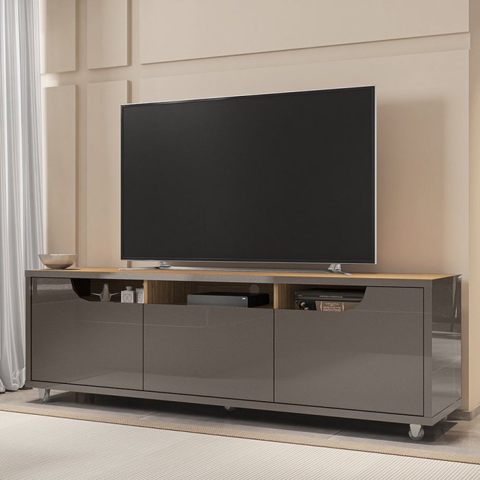 Rack Para TV até 60 Polegadas 1 Gaveta Interna New Jersey Casa D Cinza Perola/Noce