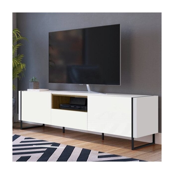 Rack para TV até 60 Polegadas 2 Portas 1 Gaveta Vesta Artesano Hanover/Branco/Preto