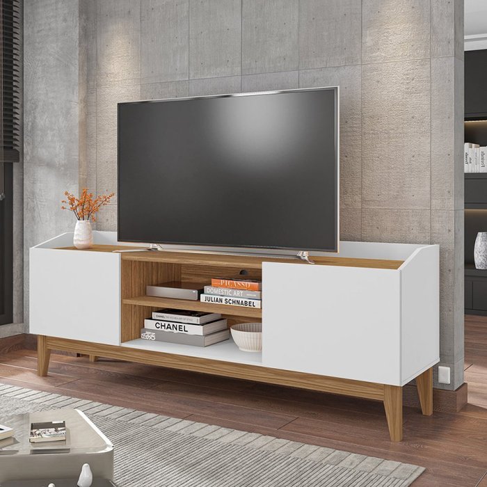 Rack Para TV até 60 Polegadas 2 Portas Ravena Versátile Casa D Branco/Noce