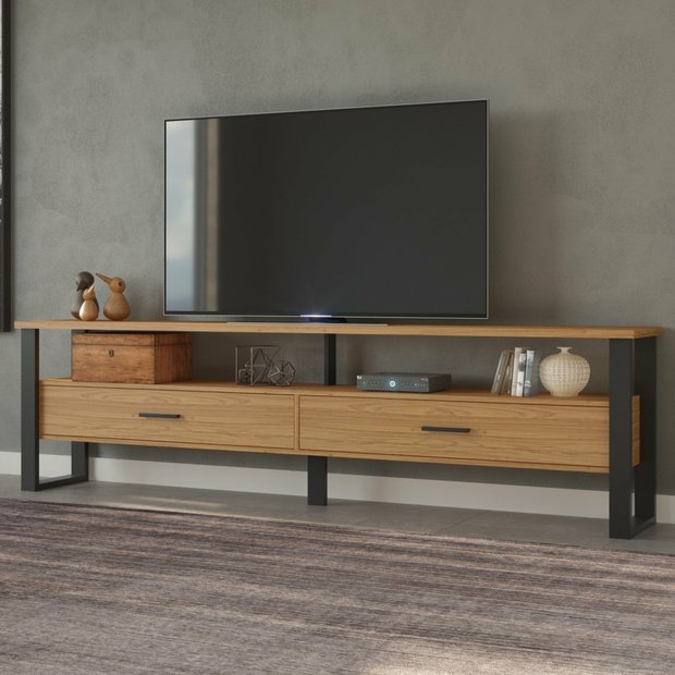 Rack para TV até 60 Polegadas MDF 220cm Prateleiras e 2 Gavetas Freijó/Preto