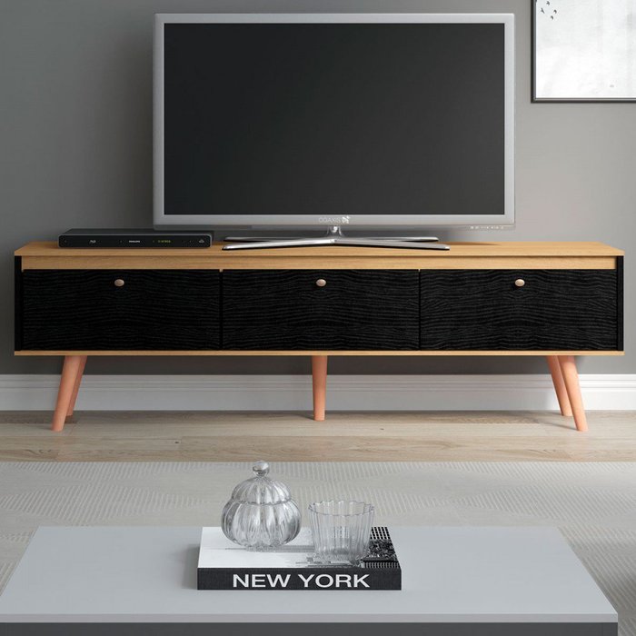 Rack para TV Até 65 Polegadas Memphis 3 Portas Carvalho Dakar/Preto - Soluzione