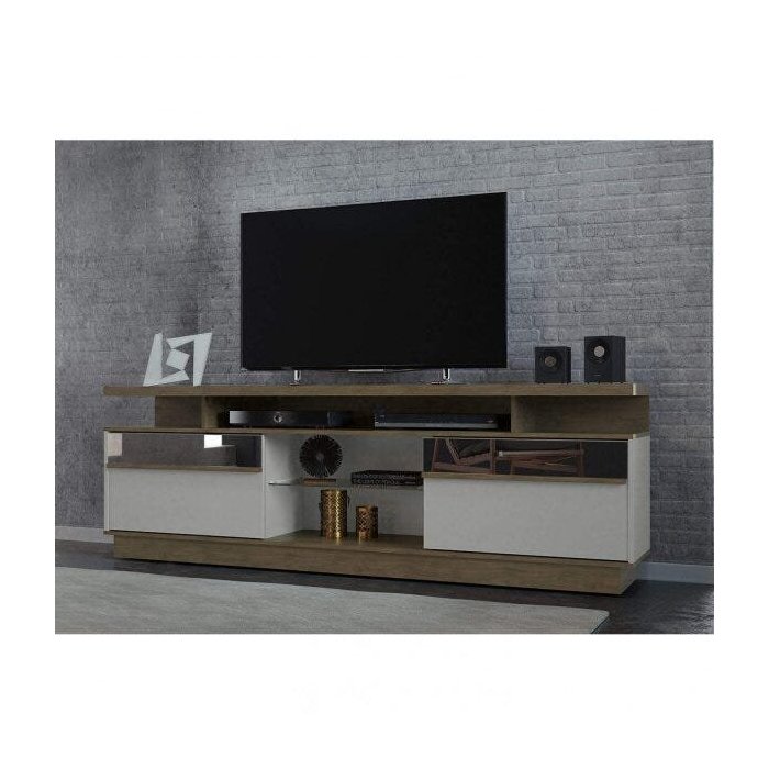 Rack Para Tv Até 65“ Recife MDP e MDF com 8 Rodízios Embutidos - Línea Brasil Avelã/Branco Off White
