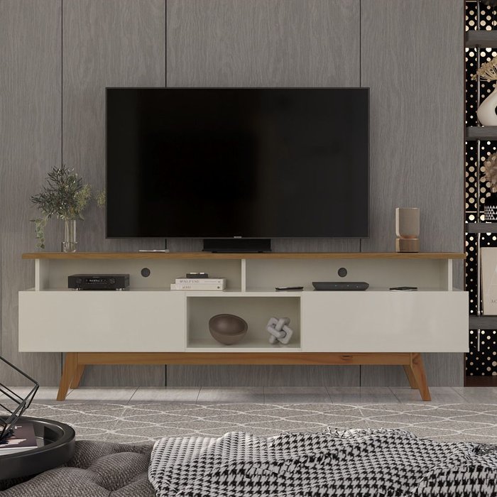 Rack para Tv até 70 Polegadas 2 Gavetas Grécia 180cm Off White/Nature