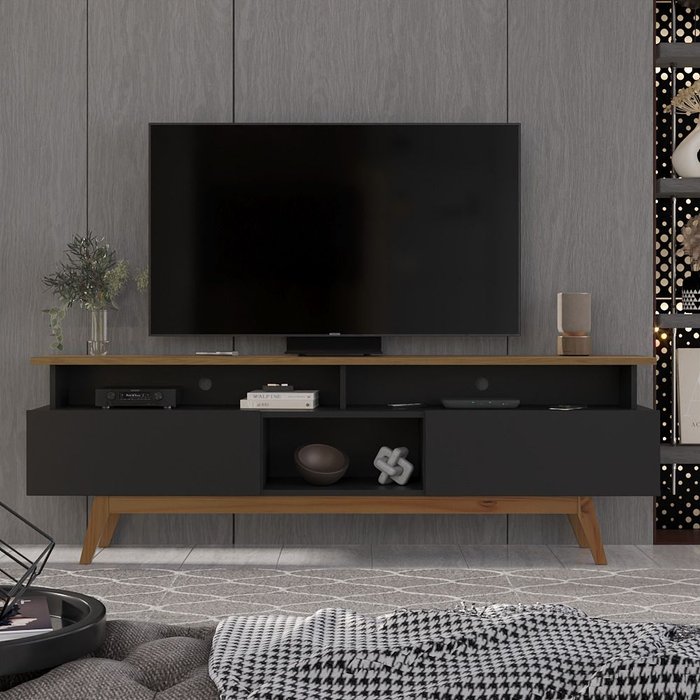 Rack para Tv até 70 Polegadas 2 Gavetas Grécia 180cm Preto/Nature