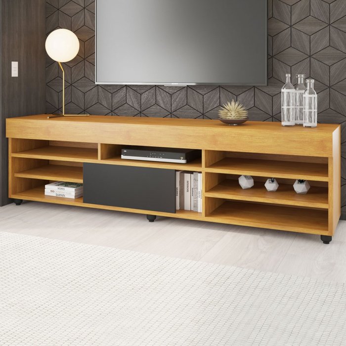 Rack para Tv até 70 Polegadas Celta 1 Porta Mel/preto - Viero Móveis Mel/Preto