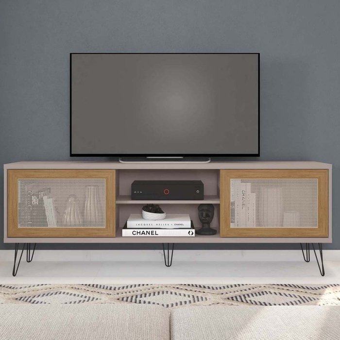 Rack para TV até 72 Polegadas Industrial Retrô 180cm em BP Porta Telada Multiverso Cacao/Buriti
