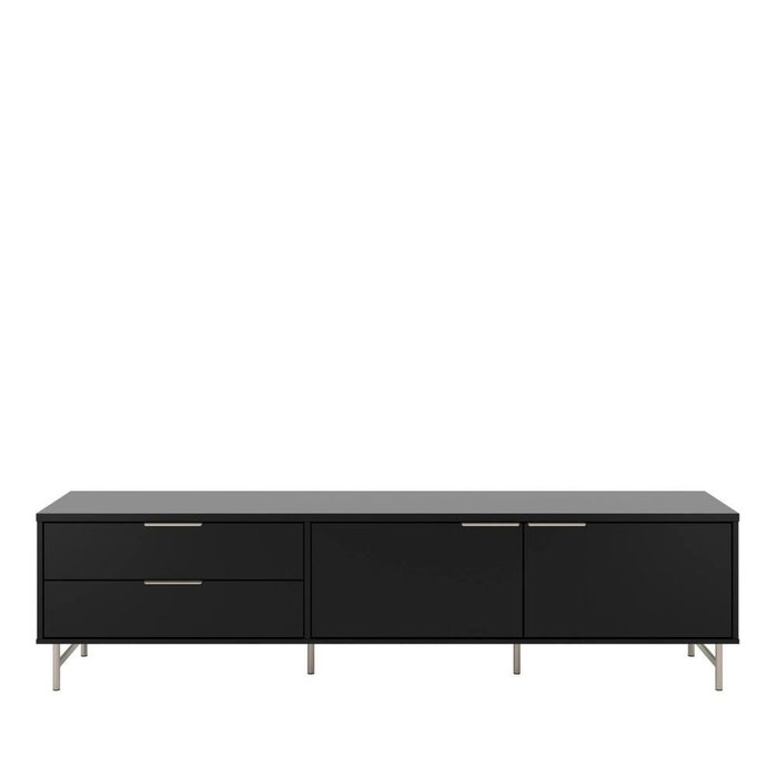 Rack para Tv até 75" 2 Gavetas e 2 Portas Yves 220 Cm - Preto Fosco C/ Champanhe