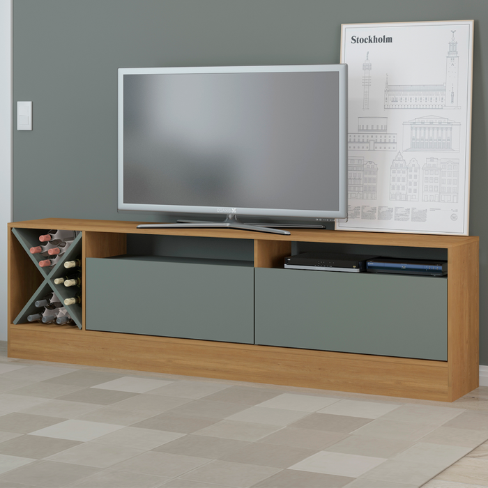 Rack para Tv até 75 Polegadas 2 Portas Denver Carvalho Dakar/cinza Vulcano 0671 - Soluzione