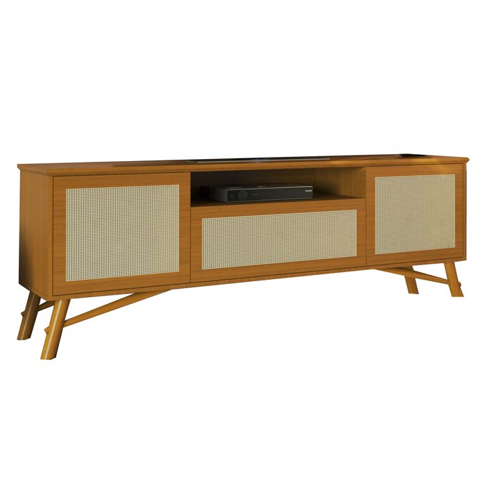 Com muito estilo e muito charme, o Rack Darín 178cm para TVs até 75 Polegadas vai dar todo o toque de design, simplicidade e lindeza que sua sala de estar merece. Com aplique em rattan nas portas, traz um ar clássico e delicado.