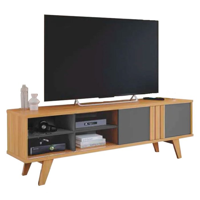 Rack para TV até 75 Polegadas 4 Nichos 1 Porta Pés Madeira Retrô 100% MDF Paraty Nature/Grafite - Pe Nature/Grafite