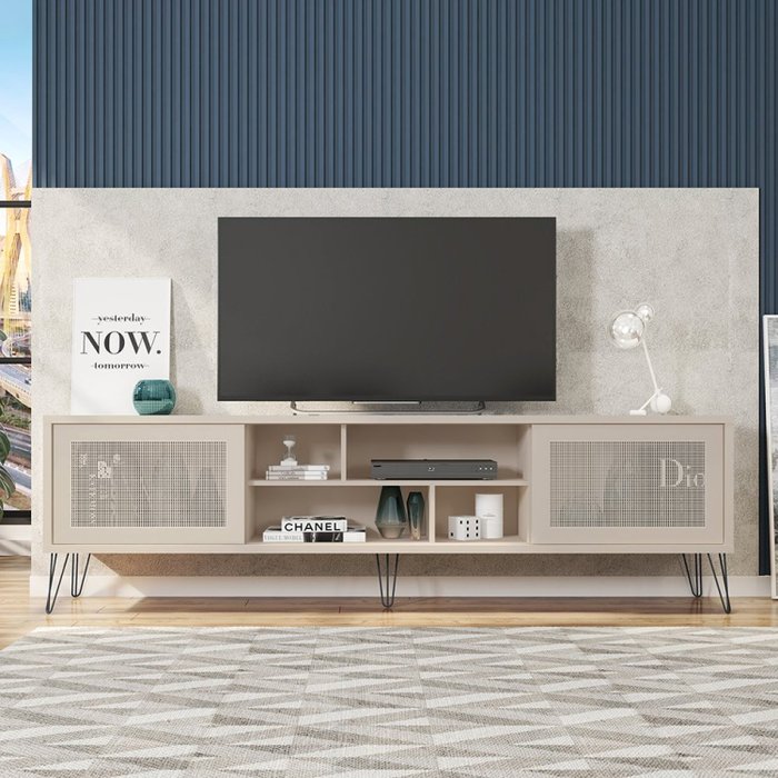 Rack para TV até 75 Polegadas Industrial Retrô 220cm em BP Porta Telada Multiverso Off White