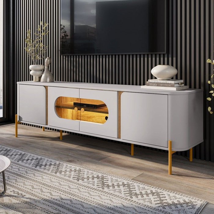 Rack para Tv até 75 Polegadas Juquehy 4 Portas com Vidro e Led Off White/cinamomo - Móveis Bechara