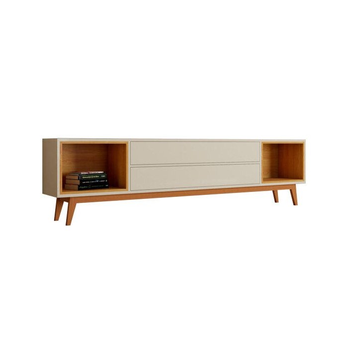 Rack para TV Delux 2.2 Off White com Nature - Móveisaqui