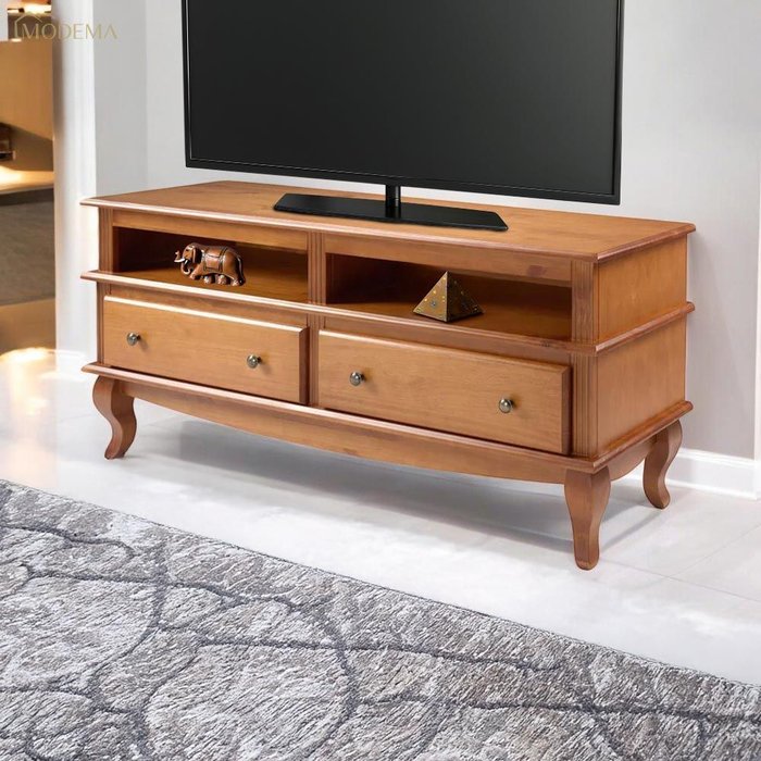 Rack para Tv em Madeira Maciça 2 Gavetas 2 Nichos com Pés Luiz Xv Genebra 5164 - Pinhão