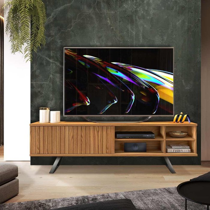 Rack Para TV Ripado Industrial Até 70 Polegadas Carvalho Nobre Calcedônia Shop JM