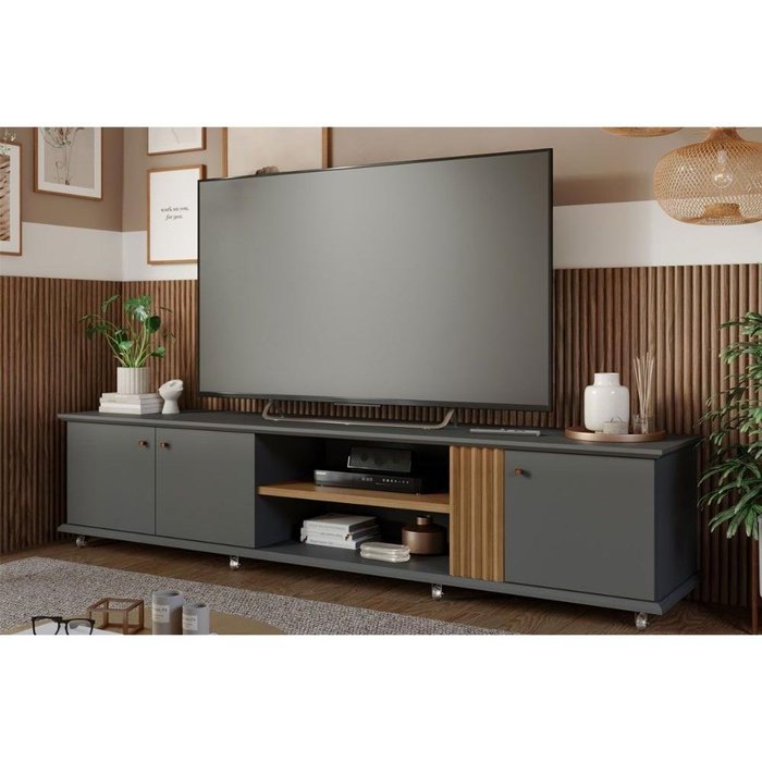 Rack para TV Riviera até 85 Polegadas c/ 2 Portas Grafite/Nature - Permóbili