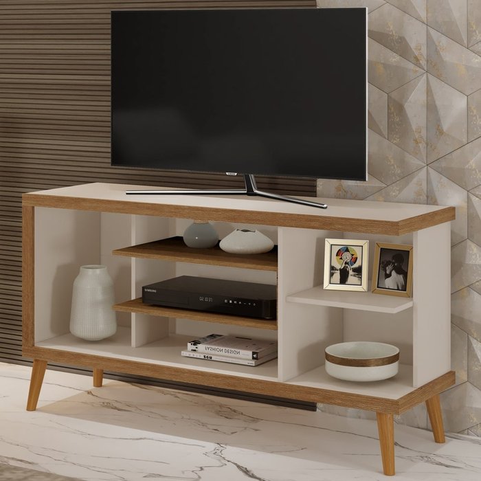 Rack para TV Petra Off White e Canela O Rack Petra é perfeito a sua sala, deixando o ambiente mais bonito, sofisticado e aconchegante. Feito em MDP, possui 3 prateleiras, 1 nicho, ideais para armazenamento de objetos e decorações. Dimensões do produto: Altura: 73 cm Largura: 131,5 cm Profundidade: 41,5 cm Informações Complementares: Material Principal: MDP Gavetas: Não Prateleiras: Sim (3) Cor : Off White e Canela Necessita Montagem: Sim Itens Inclusos: - 01 Rack; - Kit completo para montagem, manual de instruções para montagem. Garantia: 3 meses contra defeito de fabricação Informações Adicionais: - Fotos meramente ilustrativas do produto no ambiente. - Os objetos que ambientam as fotos não acompanham o produto; - Verificar descrição e tamanho do produto antes da compra. - Avaliar a mercadoria no ato do recebimento e recusar em caso de divergência ou avarias. - Mantenha as informações de contato e endereço de entrega atualizados para entrarmos em contato caso necessário. - Limpar com flanela ou pano macio seco, não utilizar produtos abrasivos, desengordurantes, álcool ou solvente. Não expor o produto diretamente à luz solar e à umidade. * Sugerimos a contratação de um montador profissional para a montagem do produto. Não nos responsabilizamos por avarias causadas no ato da montagem. * Não nos responsabilizamos pela montagem e desmontagem do produto no ato da entrega e devolução, assim como os custos gerados nestas situações. * A transportadora entregará o produto no andar térreo do endereço de entrega. * Não nos responsabilizamos por subir escadas, corredores e elevadores ou transporte por guincho em apartamentos.