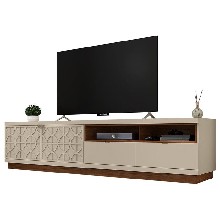 Rack para Tv Sala Moderno Bancada Off White Havana Renda Caemmun Bege