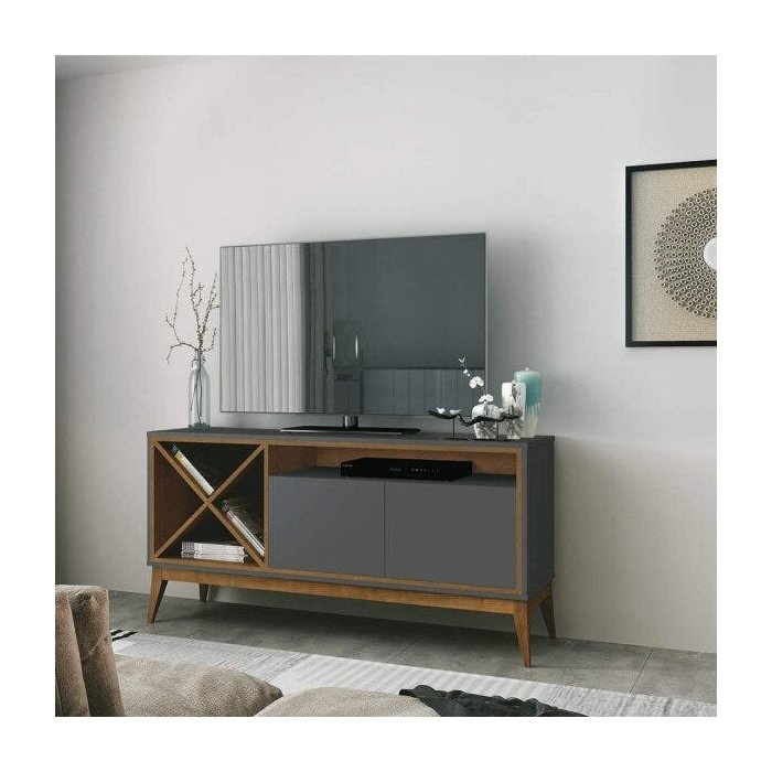 Rack para TVs até 45 Polegadas 2 Portas Lyon EDN Móveis Grafite/Naturale