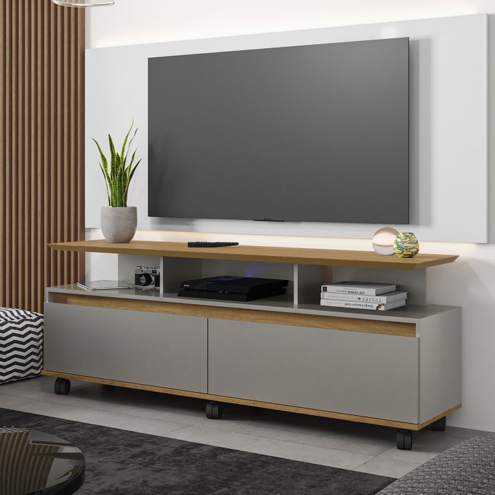 Rack para TVs até 60 Polegadas 2 Portas 3 Nichos Texas Móveis Bechara Cinamomo/Titanium