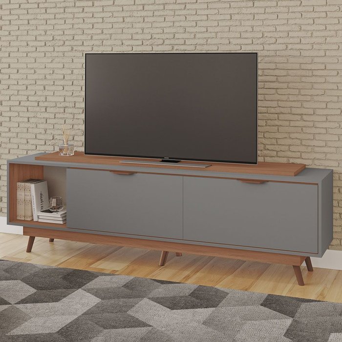 Rack Poliana 100% Mdf Tuboarte 2 Portas 1 Nicho e Pés Estilo Retrô
