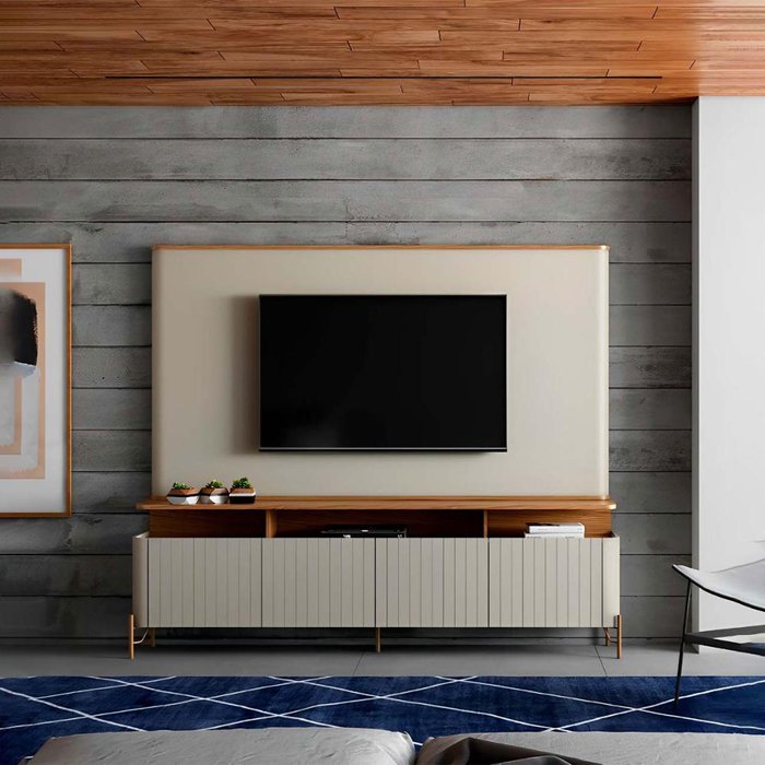 Rack Portas Brise e Pés em Metal 180cm com Painel 100% Mdf Cor:louro e Luna com Dourado