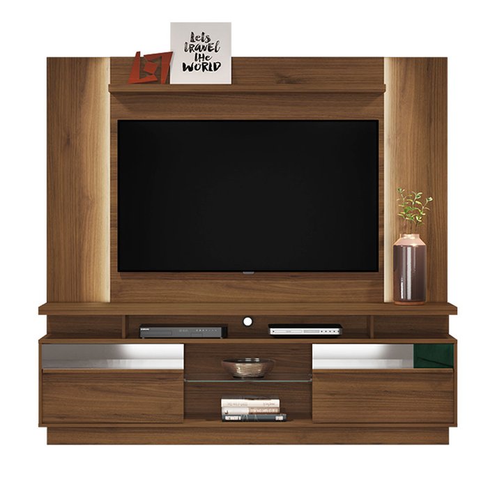 Rack Recife com Painel Aurora LED Nogueira - Linea Brasil