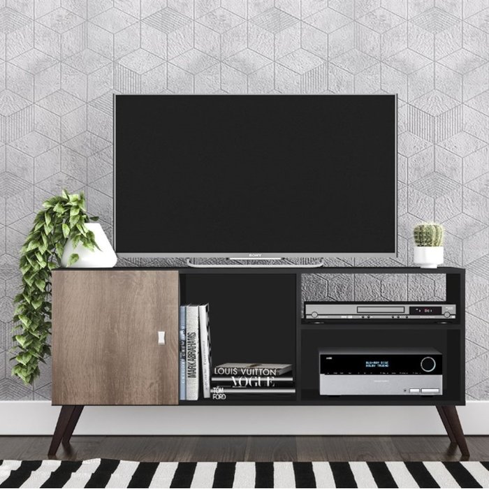Rack Retrô 1 Porta Movel Bento M. BENTO Preto Preto