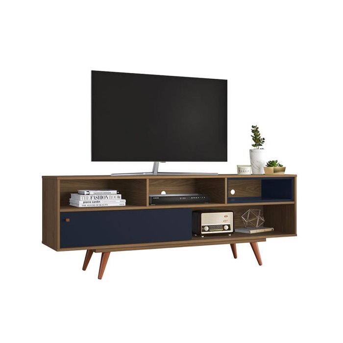 O Rack Retrô Lyon é um móvel com uma linha retrô, onde tem como diferencial seus pés em madeira no formato palito. Possui uma porta deslizante e um nicho sobreposto, e mais quatro prateleiras para colocar objetos e eletrônicos com passa fio e um espaço ótimo para sua TV.