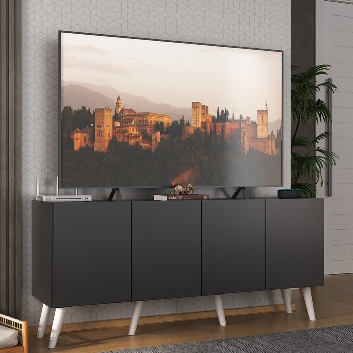 Ver imagem 4 de Rack Retrô para Tv até 50 Polegadas com 4 Portas Multimóveis Mp1071 Preto/branco